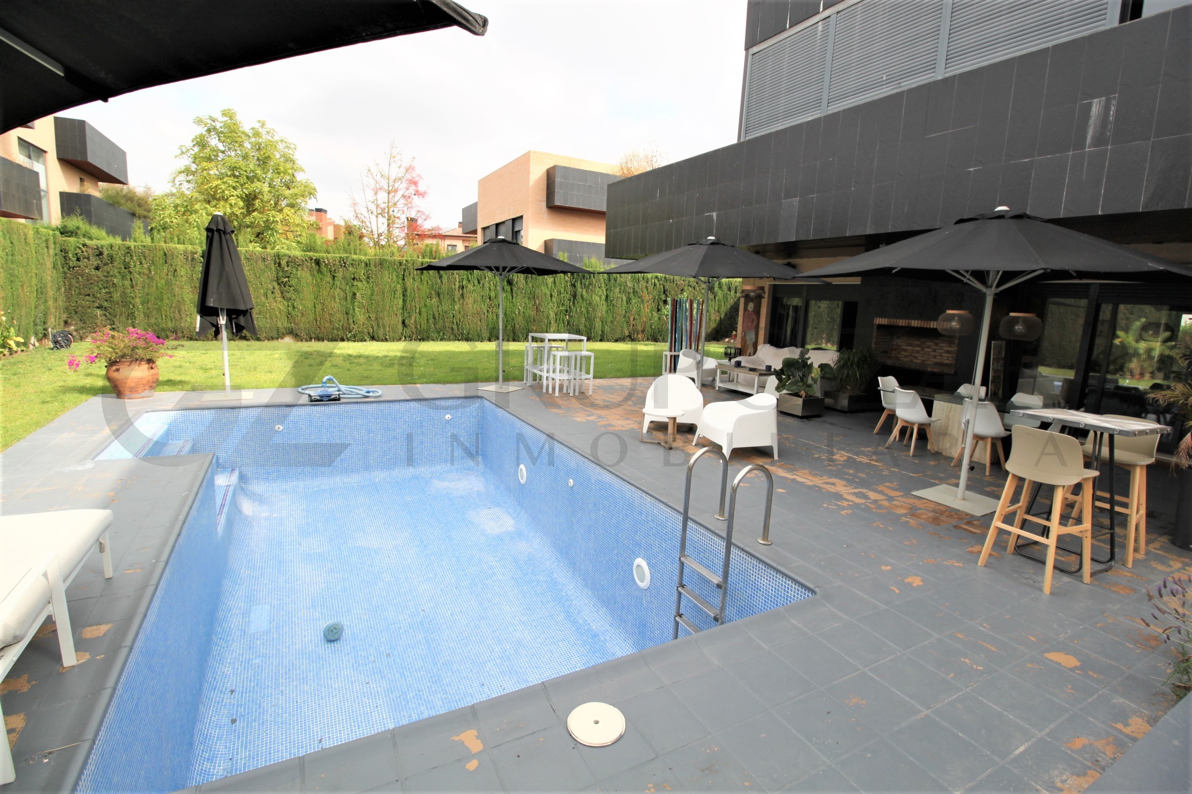 La casa consta de 490 m2 distribuidos en 3 plantas y construidos sobre una parcela de 900 m2, donde podemos disfrutar de zona para aparcar los coches al aire libre, su maravilloso jardín, piscina independiente y de la terraza con su zona de barbacoa.