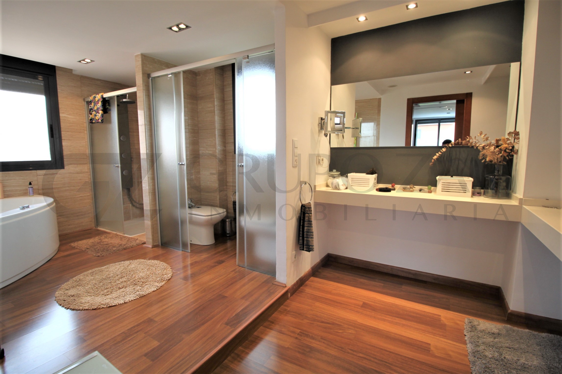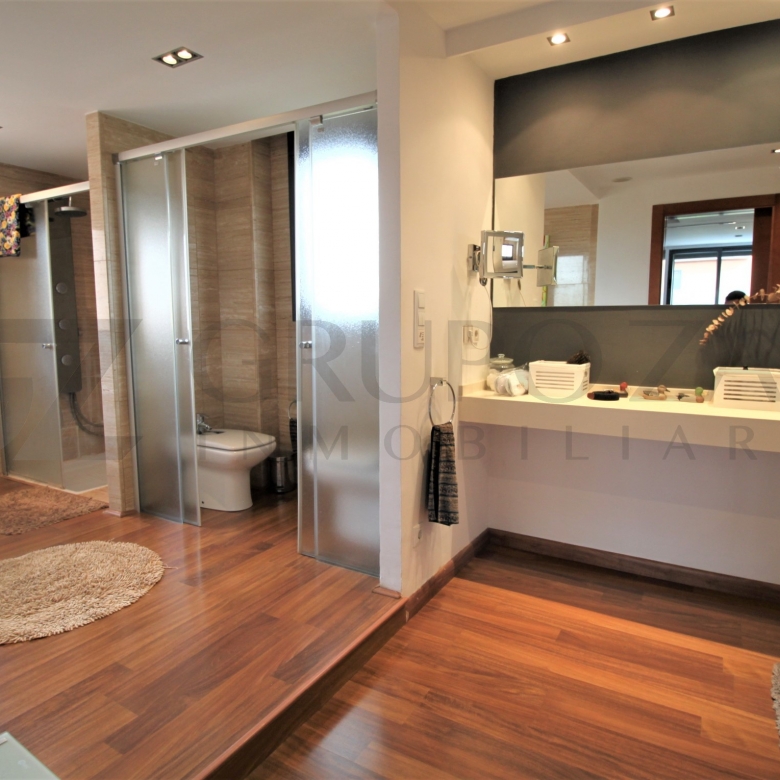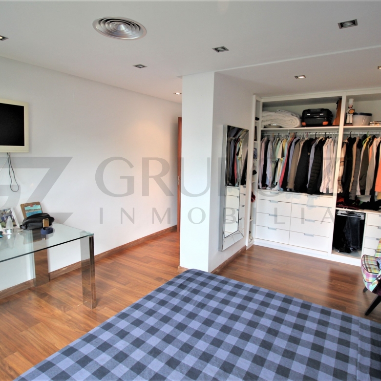 En primera planta encontramos dos habitaciones dobles con zona de vestidor y un baño para compartir, también encontramos en la misma planta la habitación principal con baño en suite, zona de vestidor, zona de lectura y salida a una terraza solárium.