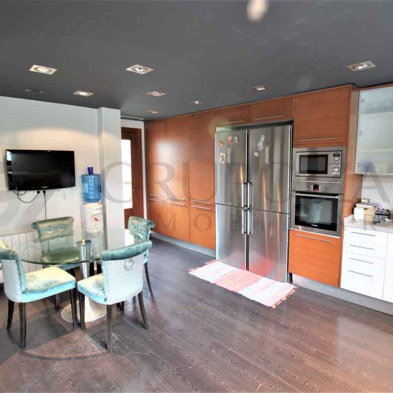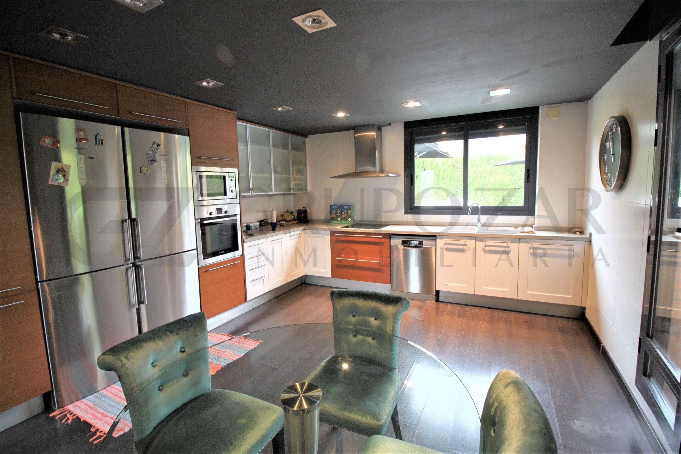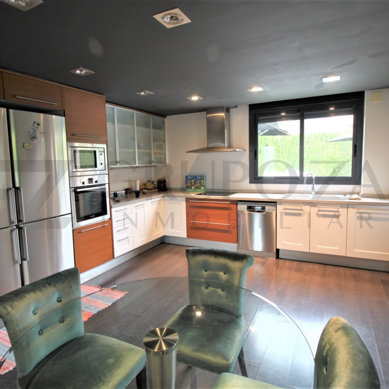 En planta baja encontramos el recibidor con un magnifico y enorme ventanal de suelo a techo que da luz a todas las estancias de la casa. Seguidamente encontramos su salón comedor, amplio y con acceso a la cocina y salida a la terraza por sus amplios ventanales, la cocina completamente equipada, baño de cortesía y una habitación con baño en suite.