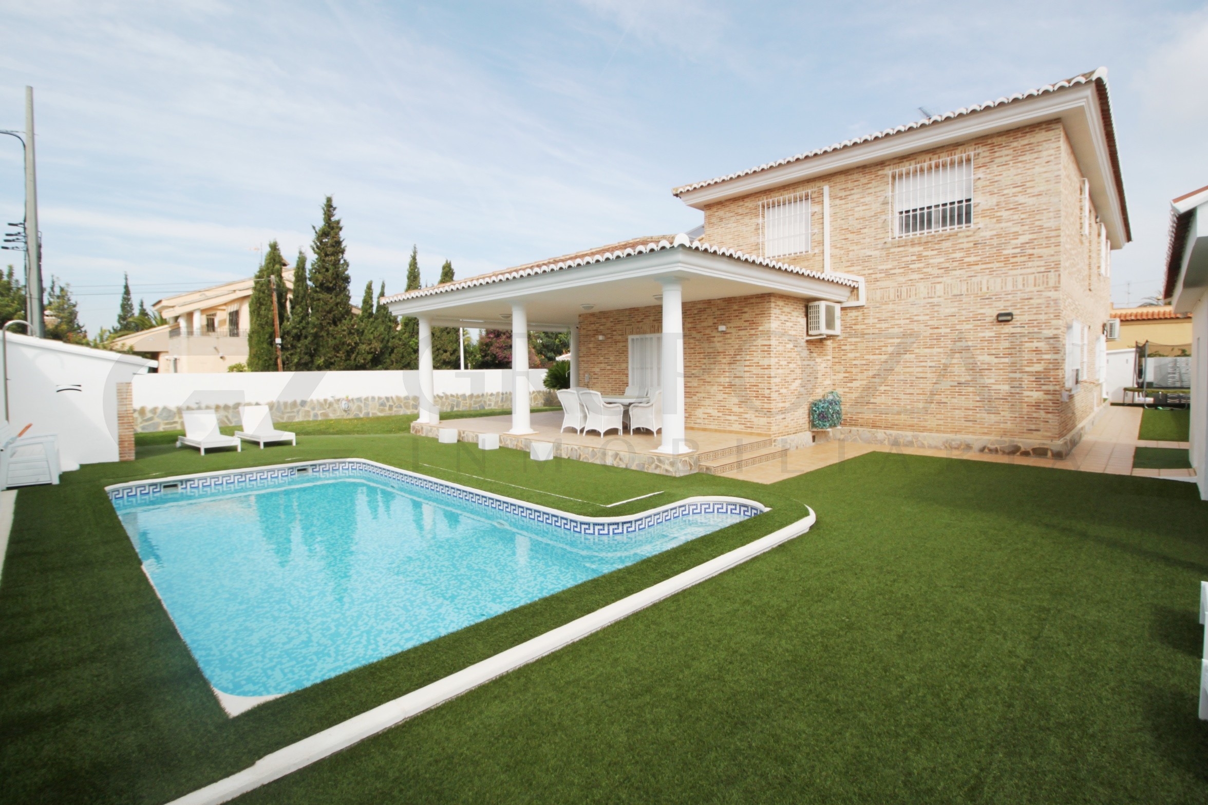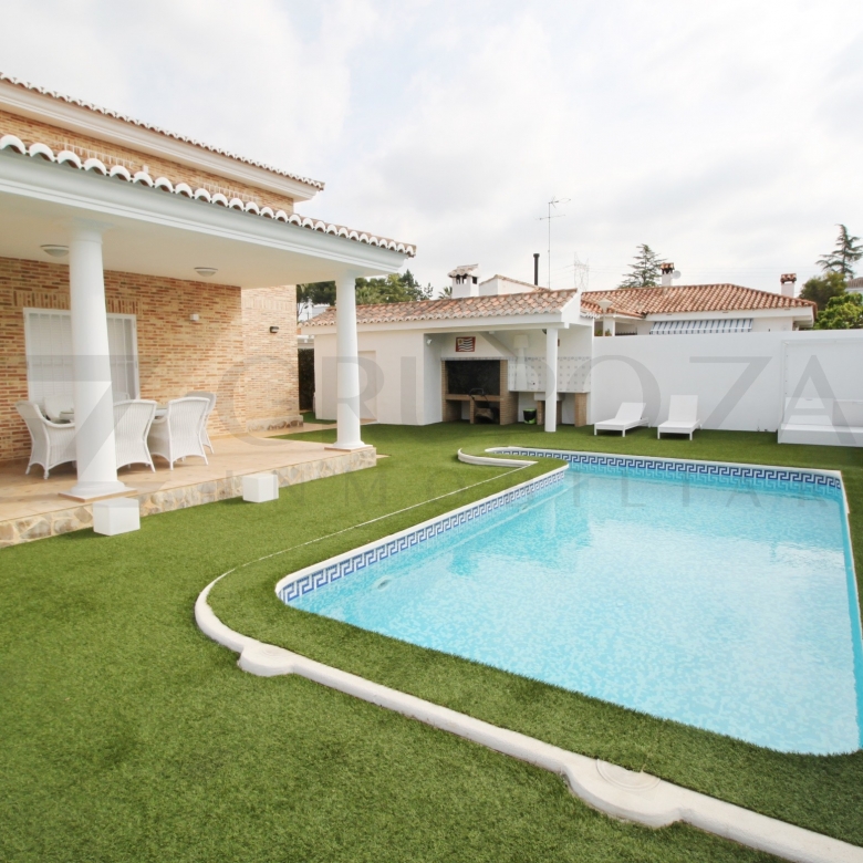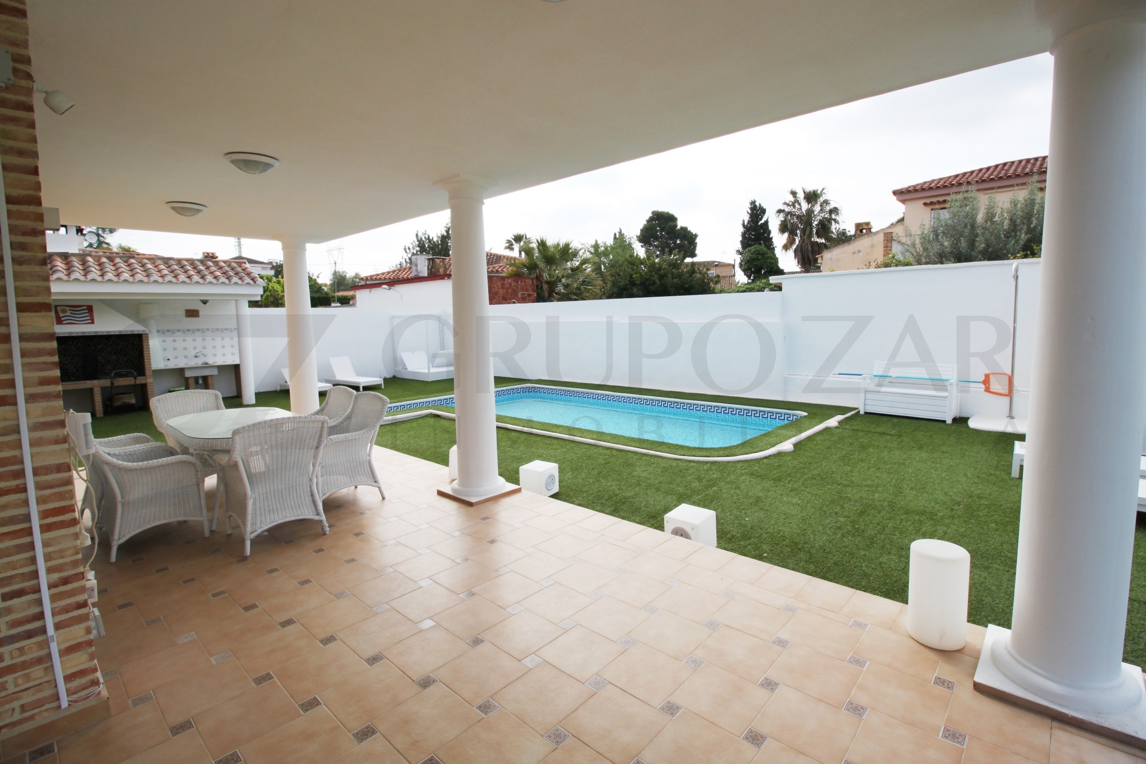 Esta maravillosa vivienda independiente consta de 320 m2 construida sobre una parcela de 875 m2, donde disponemos de parking cubierto para 2 vehículos, zona de jardín, piscina independiente, paellero y trastero.