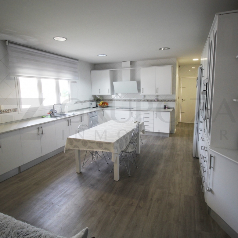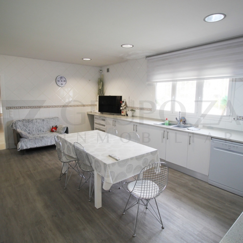 En planta baja encontramos el hall de entrada con zona de recibidor, a la derecha nos encontramos el salón-comedor, amplio y con mucha luz gracias a sus ventanales con salida a la terraza cubierta y zona del jardín y la piscina. A la izquierda pasamos a la maravillosa y enorme cocina con su zona de comedor, con lavadero y despensa, con entrada y salida a la zona de parking. Seguidamente en esta planta baja encontramos dos habitaciones y un baño completo con ducha.