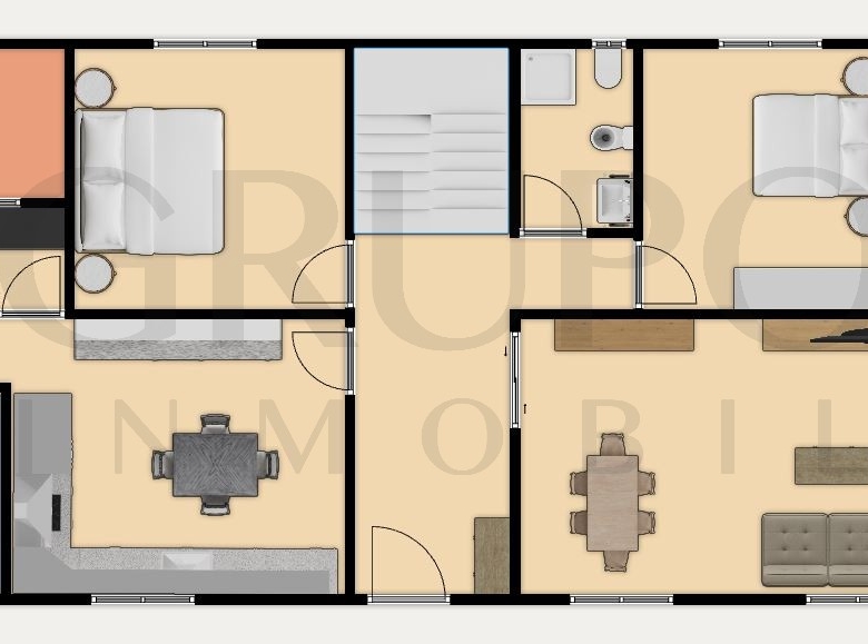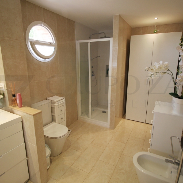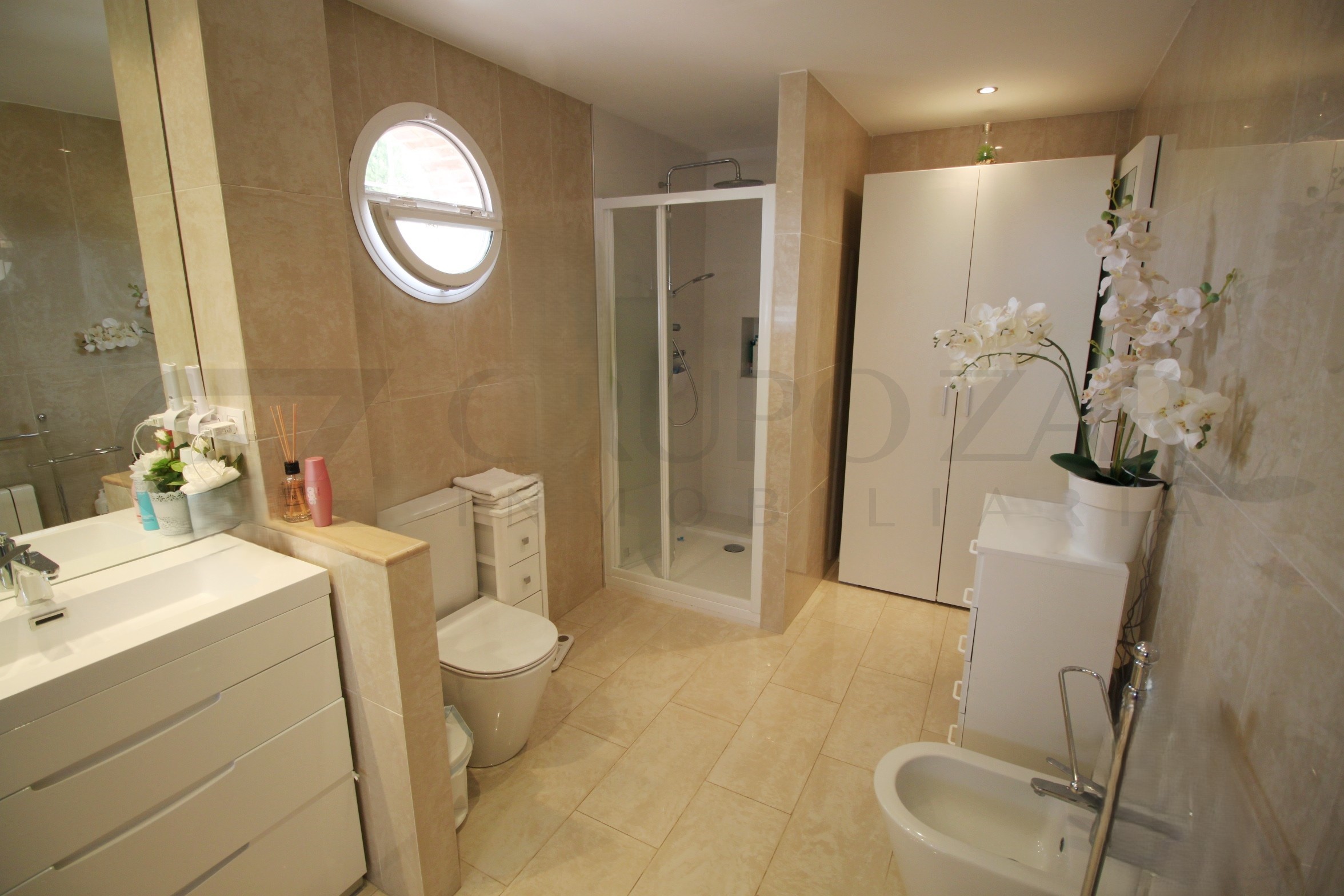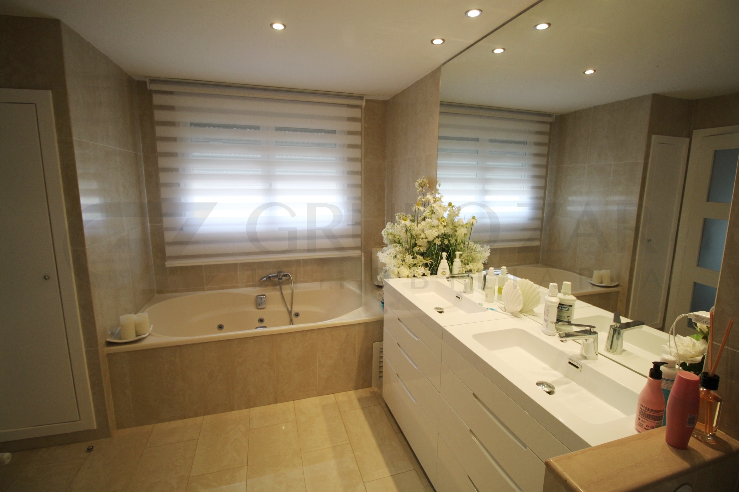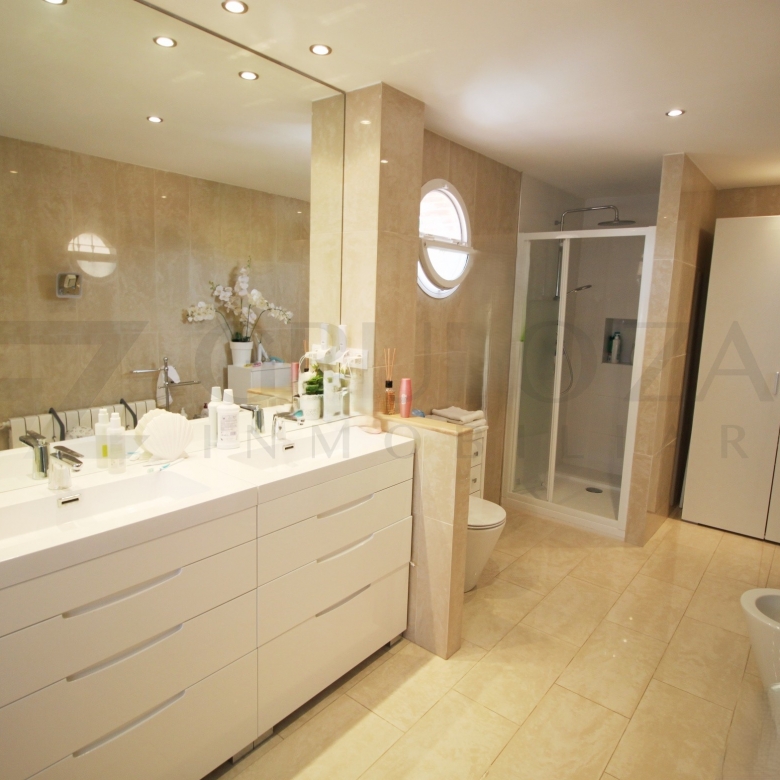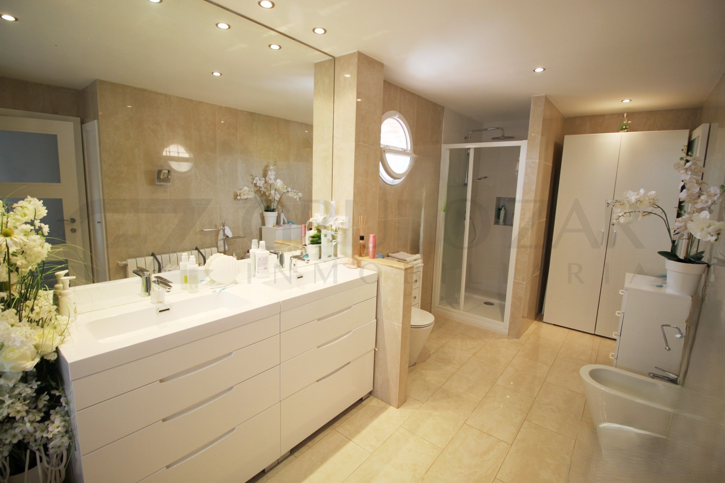 Al acceder a la primera planta encontramos la magnifica habitación principal con salida a una terraza, vestidor y un enorme baño en suite con ducha y bañera hidromasaje. También encontramos en esta planta dos habitaciones dobles y un baño con bañera.