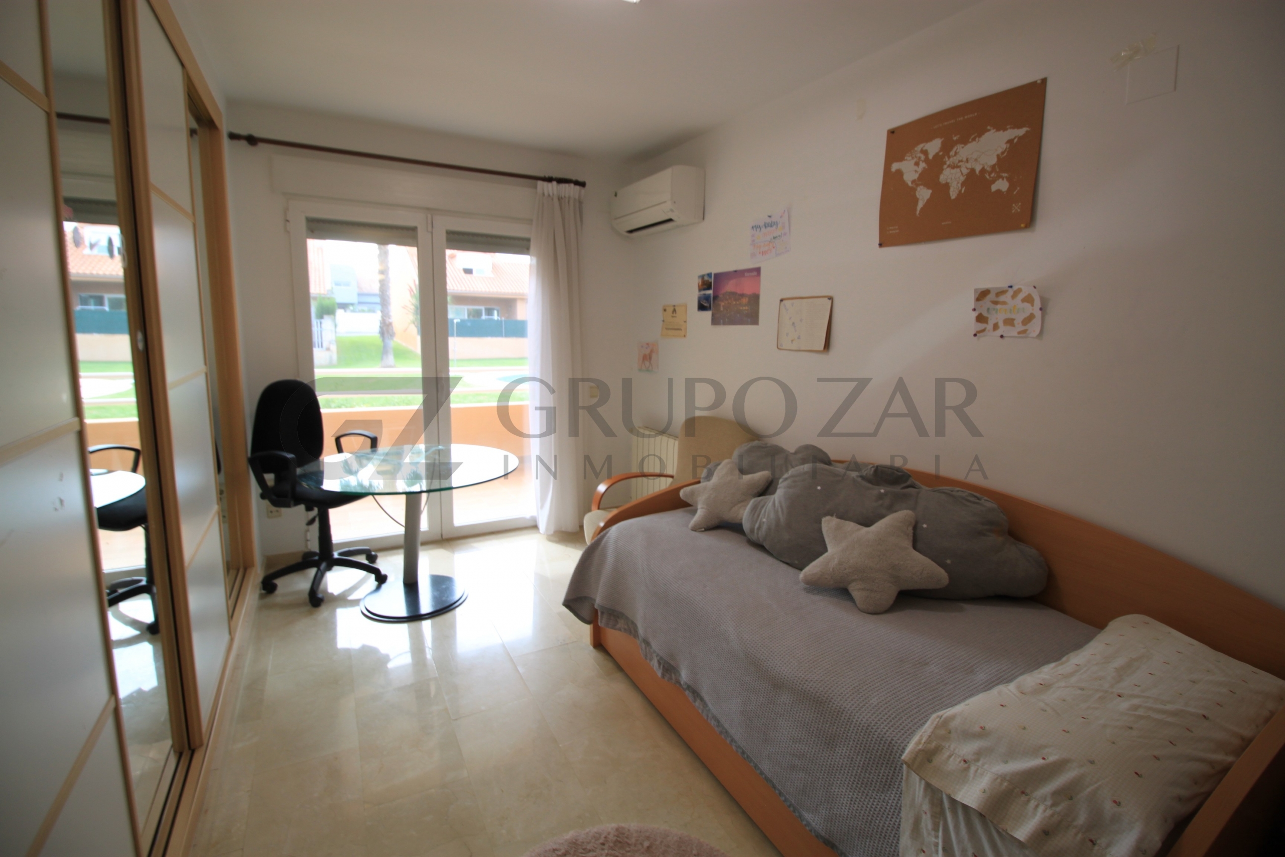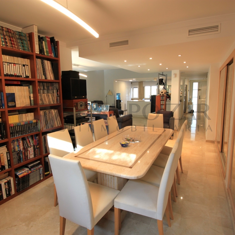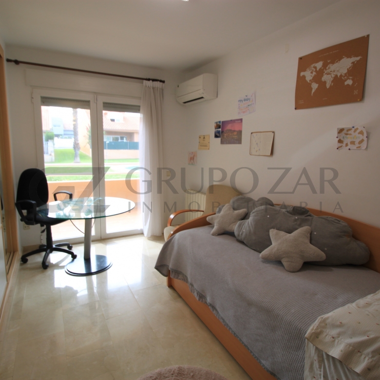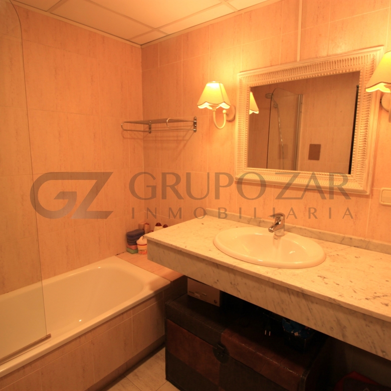 Dispone también de un aseo de cortesía y de una bonita terraza con acceso a las zonas comunes, las cuales están compuestas por una gran piscina y una amplia zona ajardinada, perfecta para poder disfrutar de ella prácticamente todo el año, gracias al agradable clima mediterráneo que tenemos en la zona.
