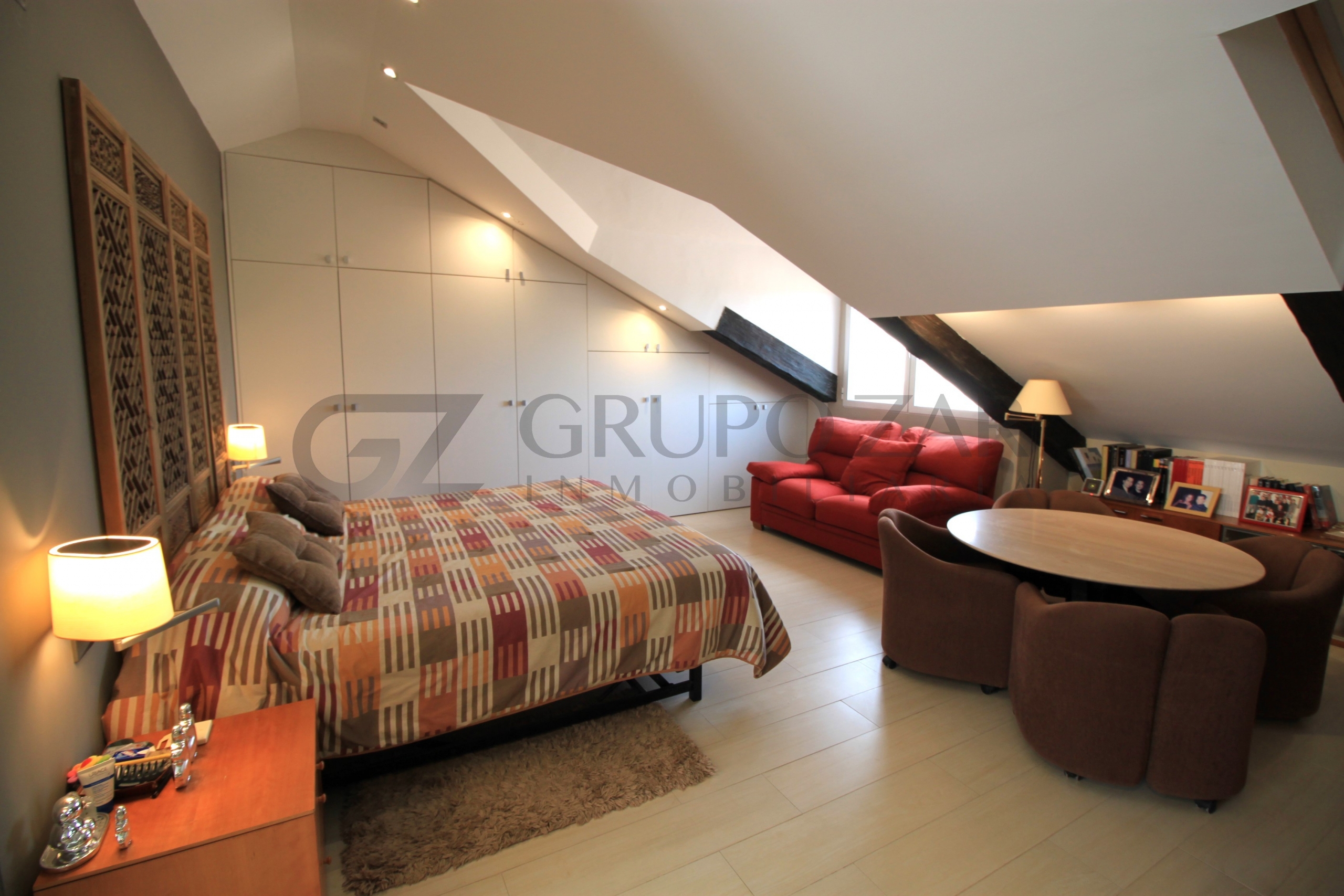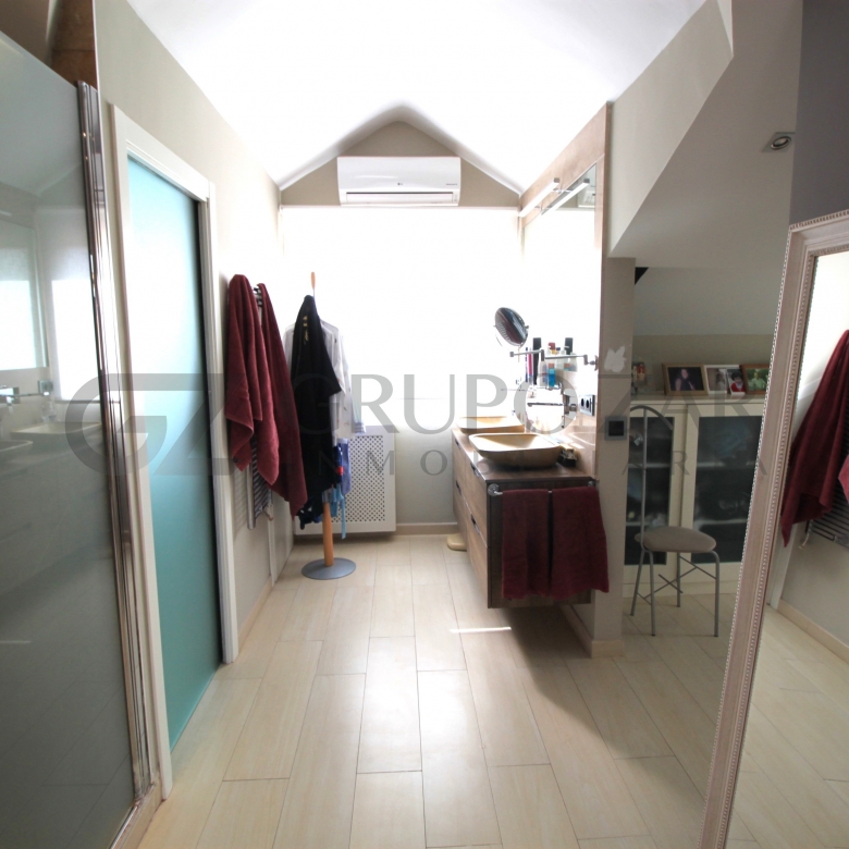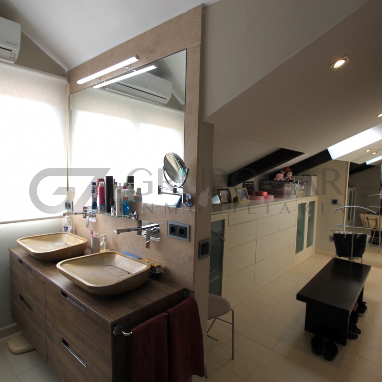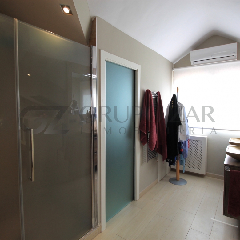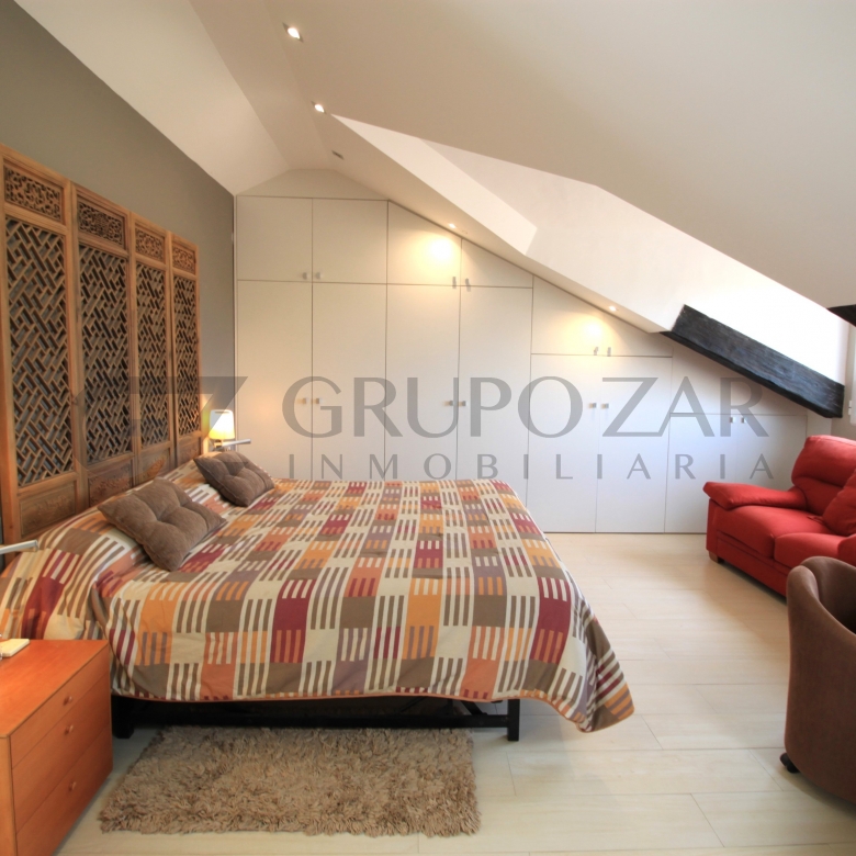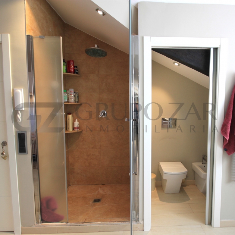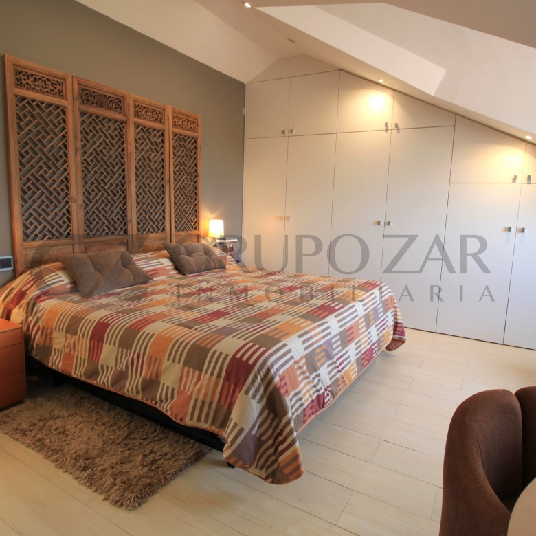 En la planta superior de la vivienda se encuentra la habitación por excelencia, abuhardillada con mucho encanto y mucha luz tenemos la máster bedroom, una habitación completamente diáfana con vestidor, muchísimo almacenaje, ducha y baño separados, dos senos y una zona de trabajo o lectura, esta zona te enamorará.