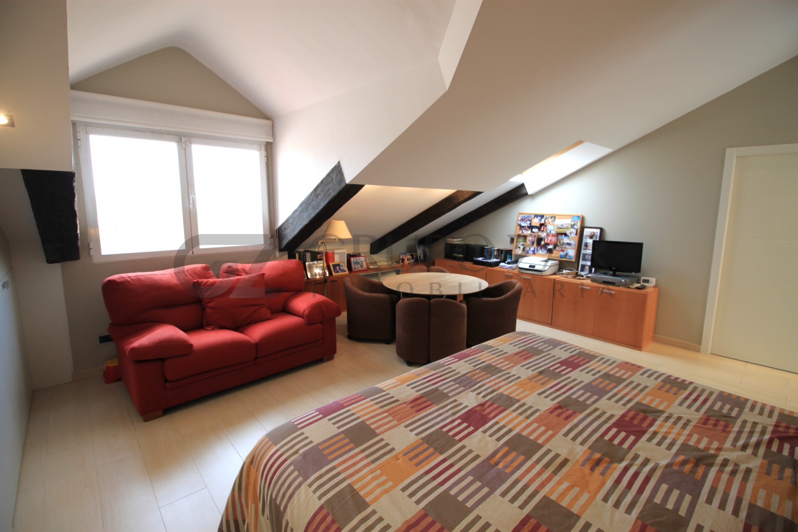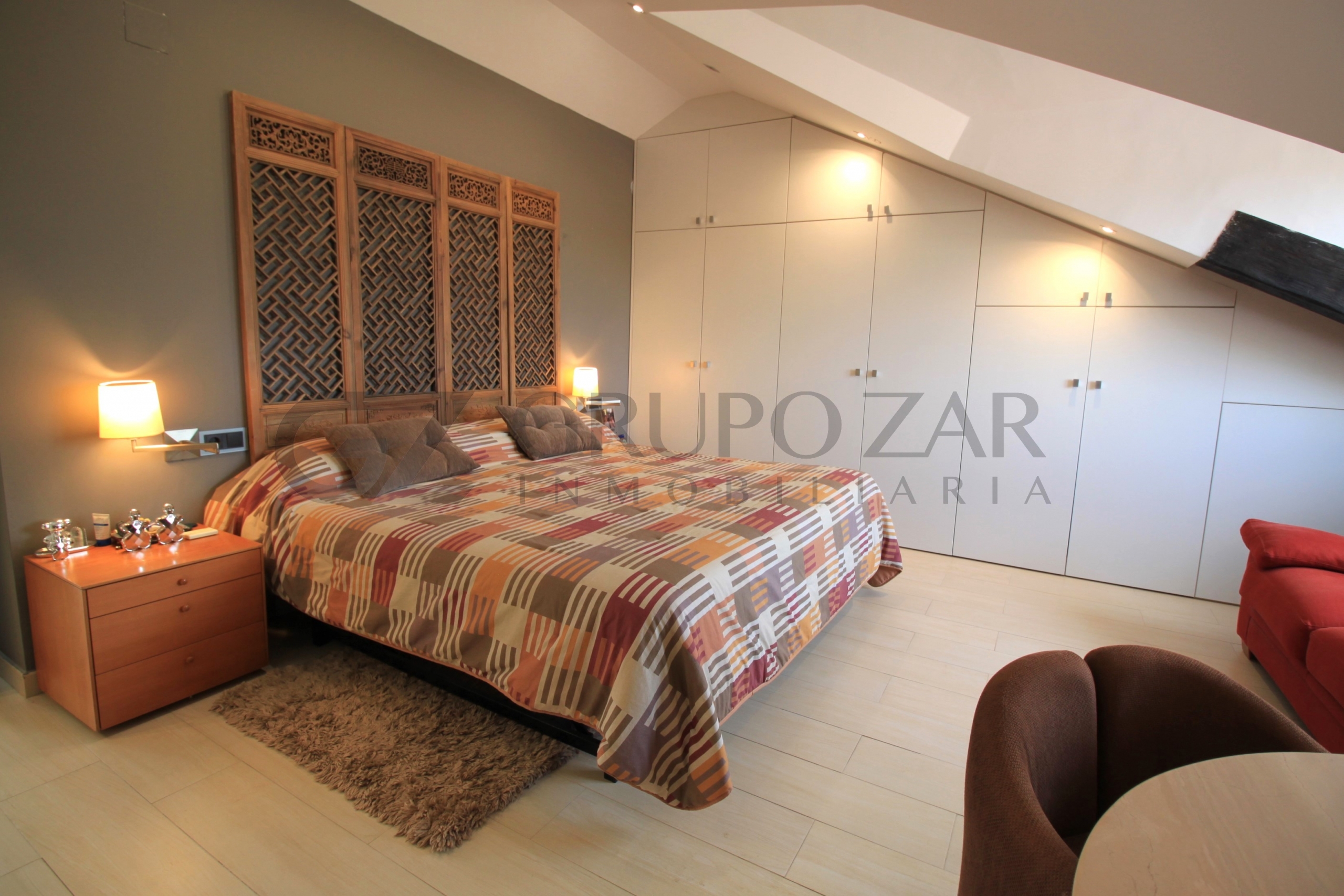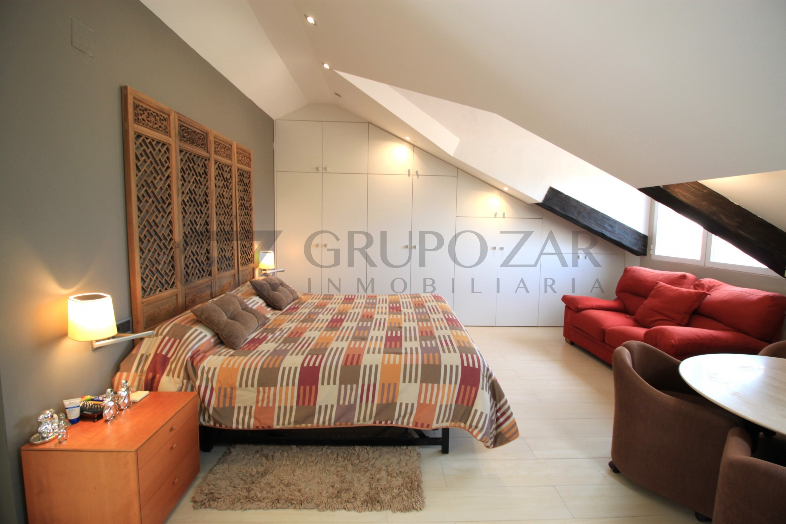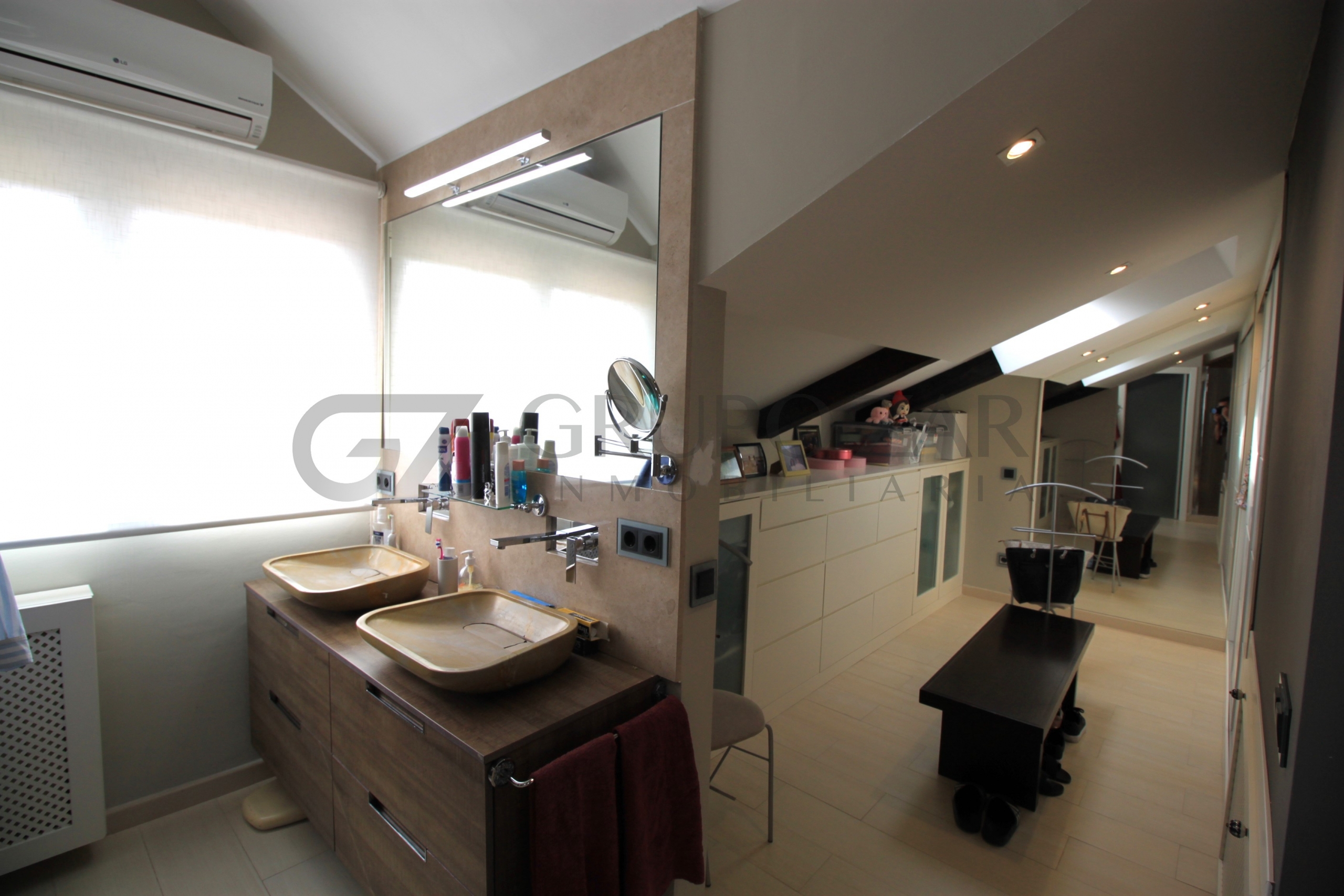 En la planta superior de la vivienda se encuentra la habitación por excelencia, abuhardillada con mucho encanto y mucha luz tenemos la máster bedroom, una habitación completamente diáfana con vestidor, muchísimo almacenaje, ducha y baño separados, dos senos y una zona de trabajo o lectura, esta zona te enamorará.