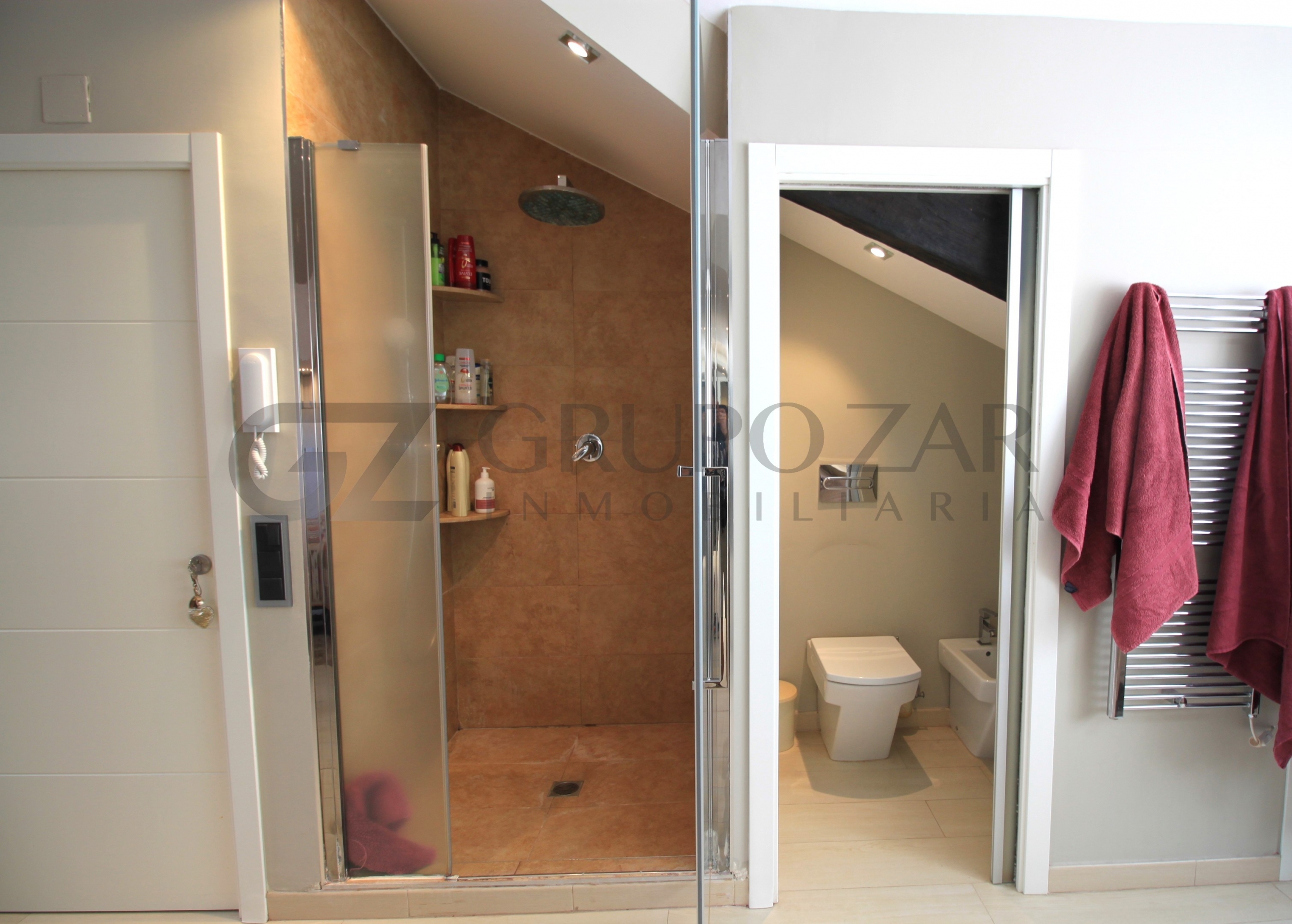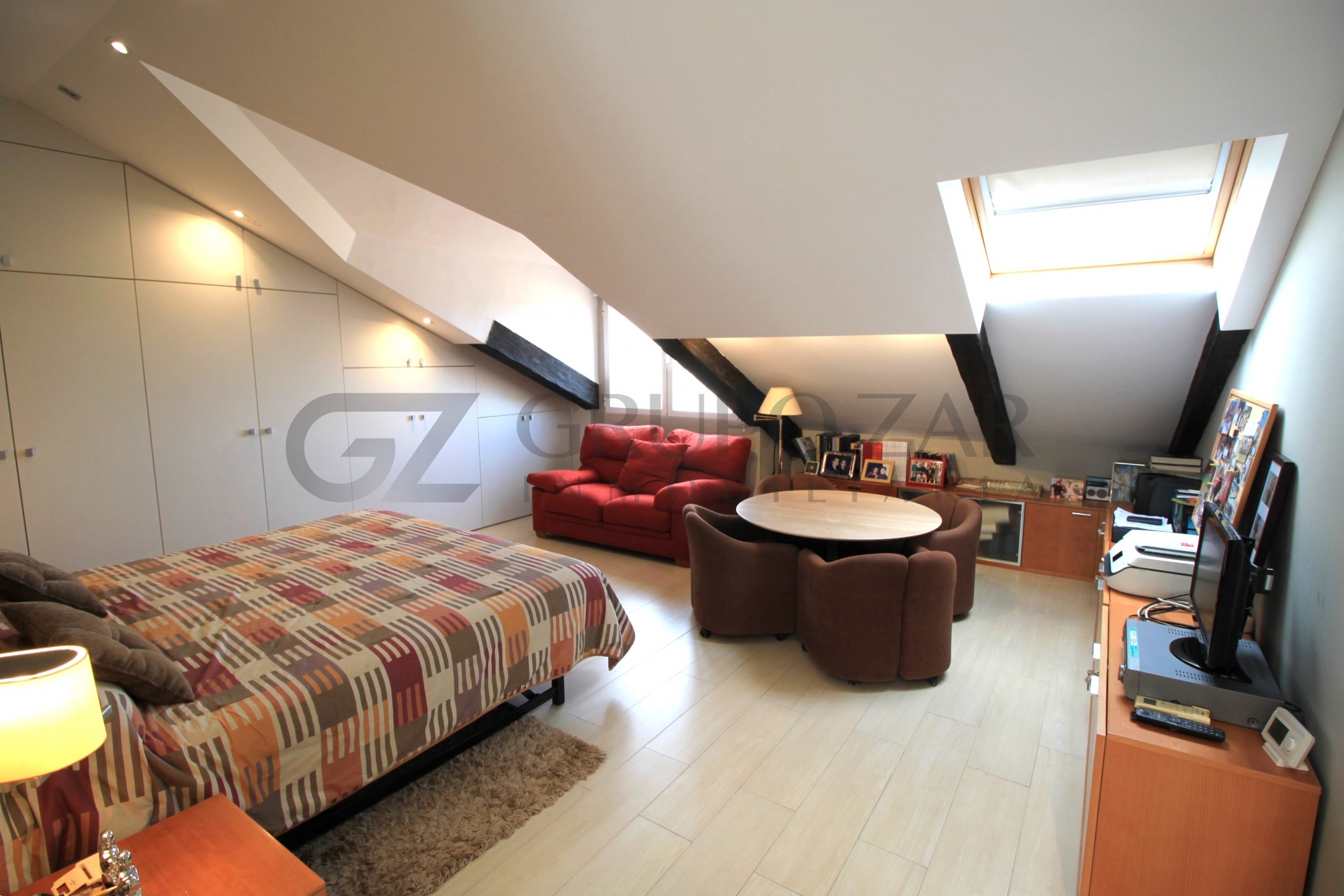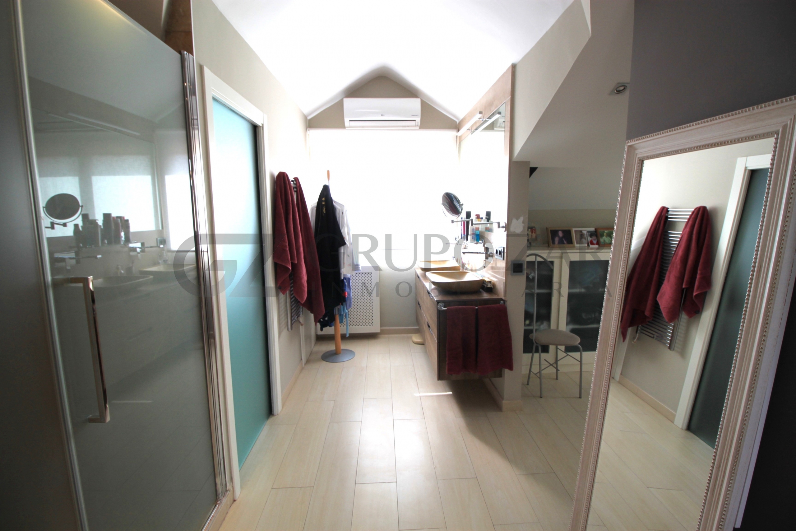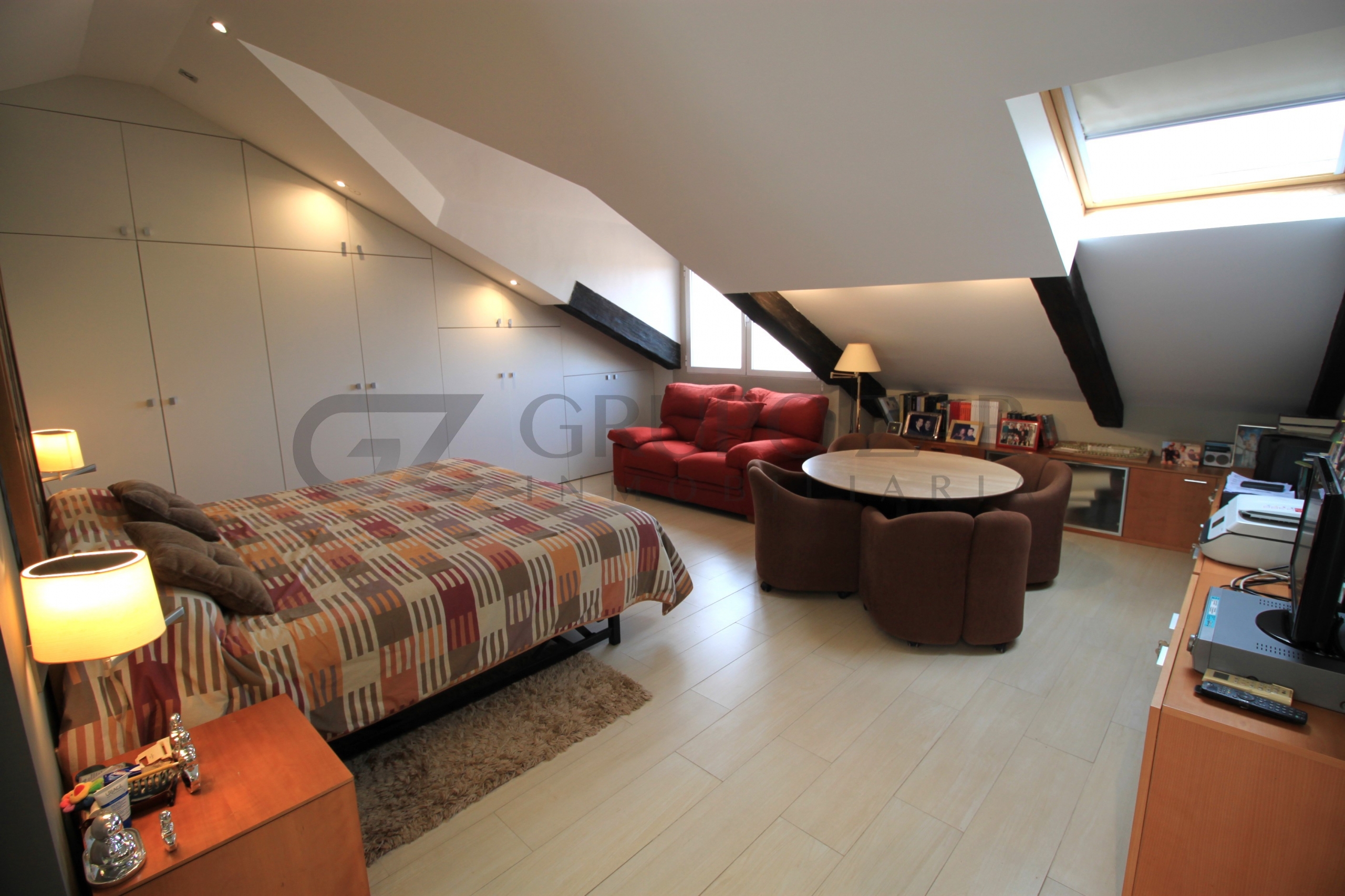 En la planta superior de la vivienda se encuentra la habitación por excelencia, abuhardillada con mucho encanto y mucha luz tenemos la máster bedroom, una habitación completamente diáfana con vestidor, muchísimo almacenaje, ducha y baño separados, dos senos y una zona de trabajo o lectura, esta zona te enamorará.